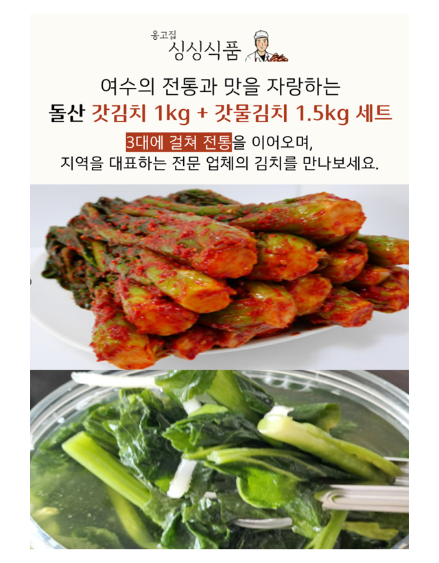 [옹고집싱싱식품] 여수 돌산 갓김치(1kg) + 갓물김치(1.5kg) 세트